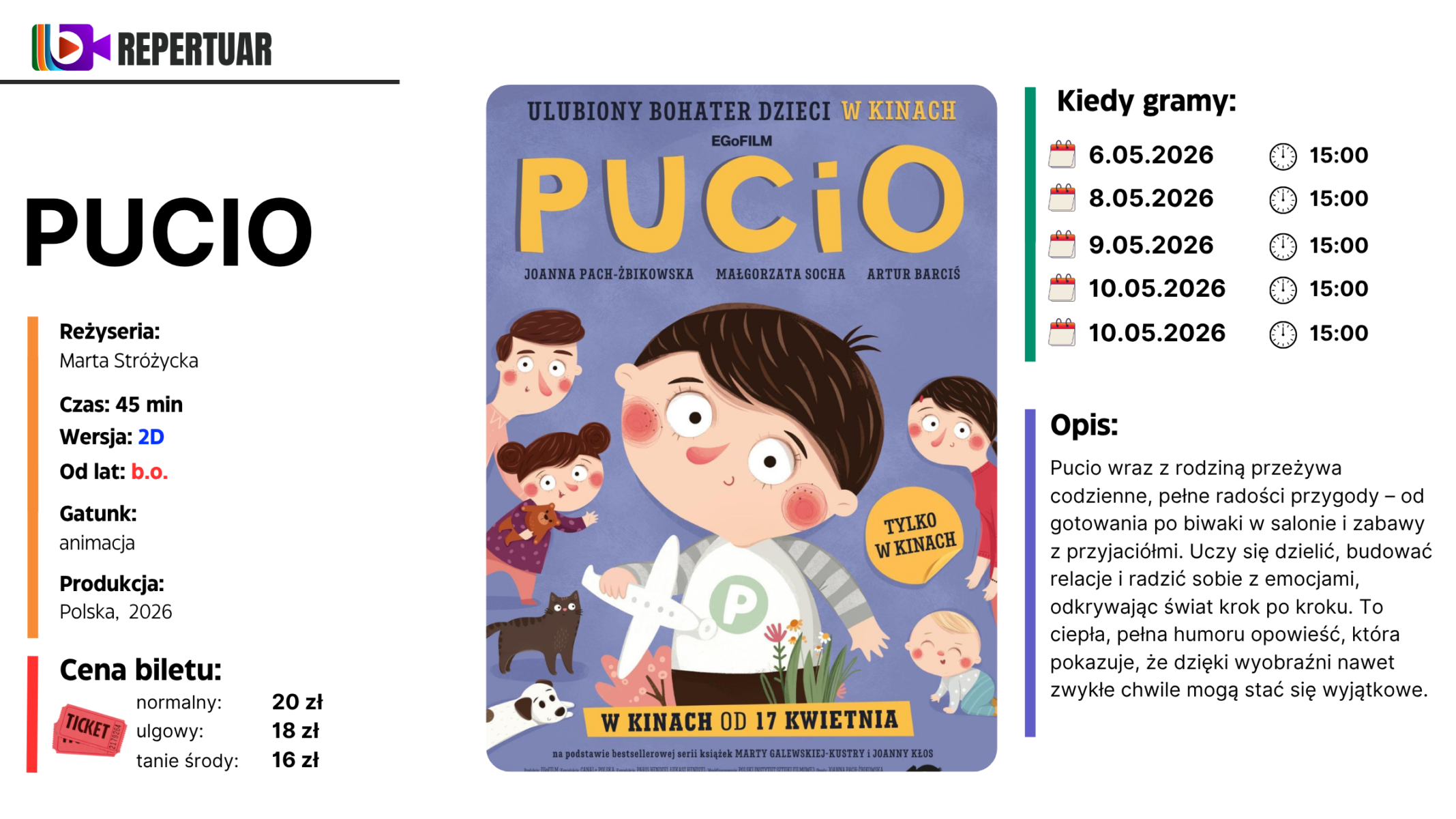 Aktualny repertuar kina wraz z możliwością kupna biletu on-line.