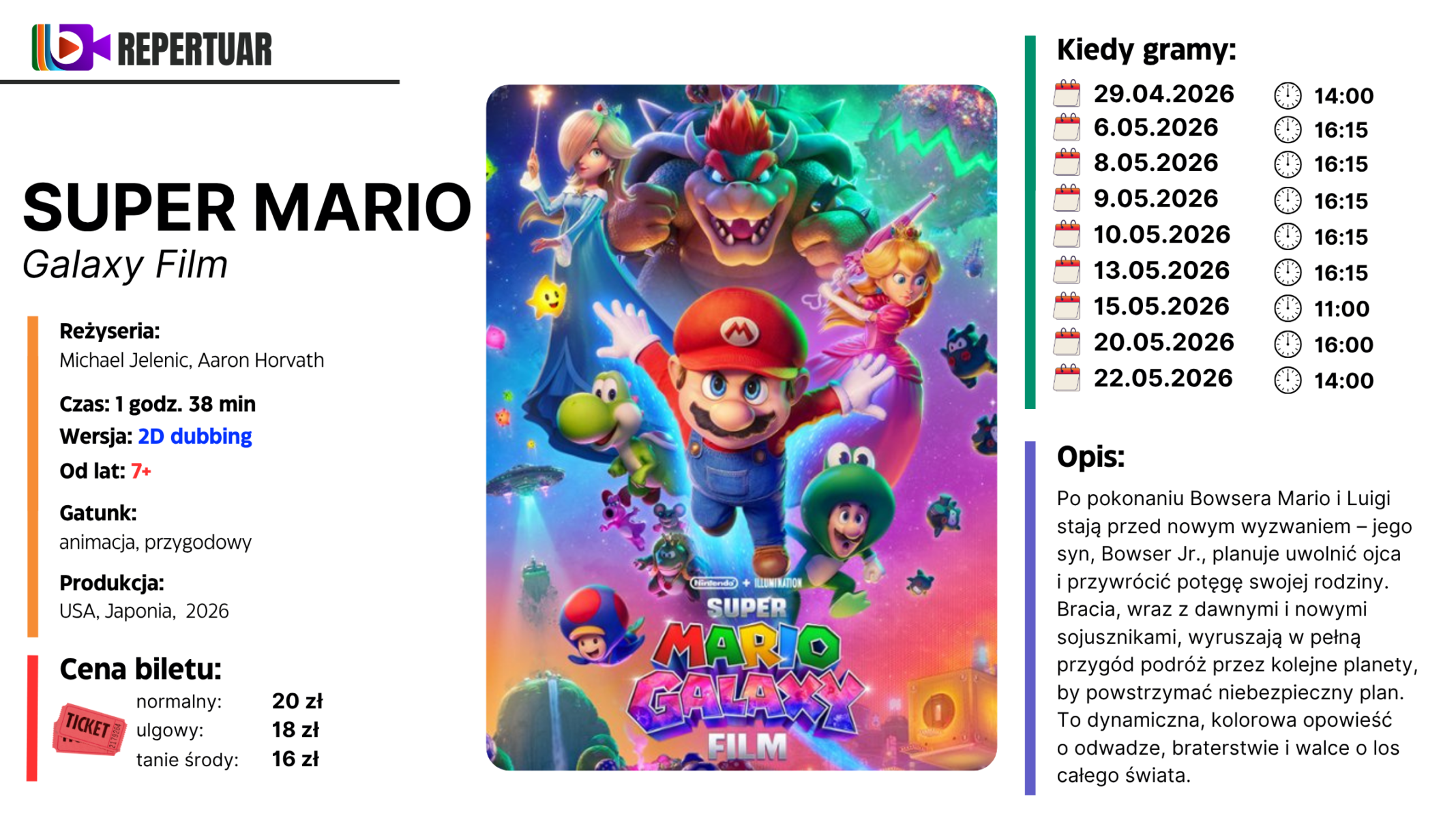 Aktualny repertuar kina wraz z możliwością kupna biletu on-line.
